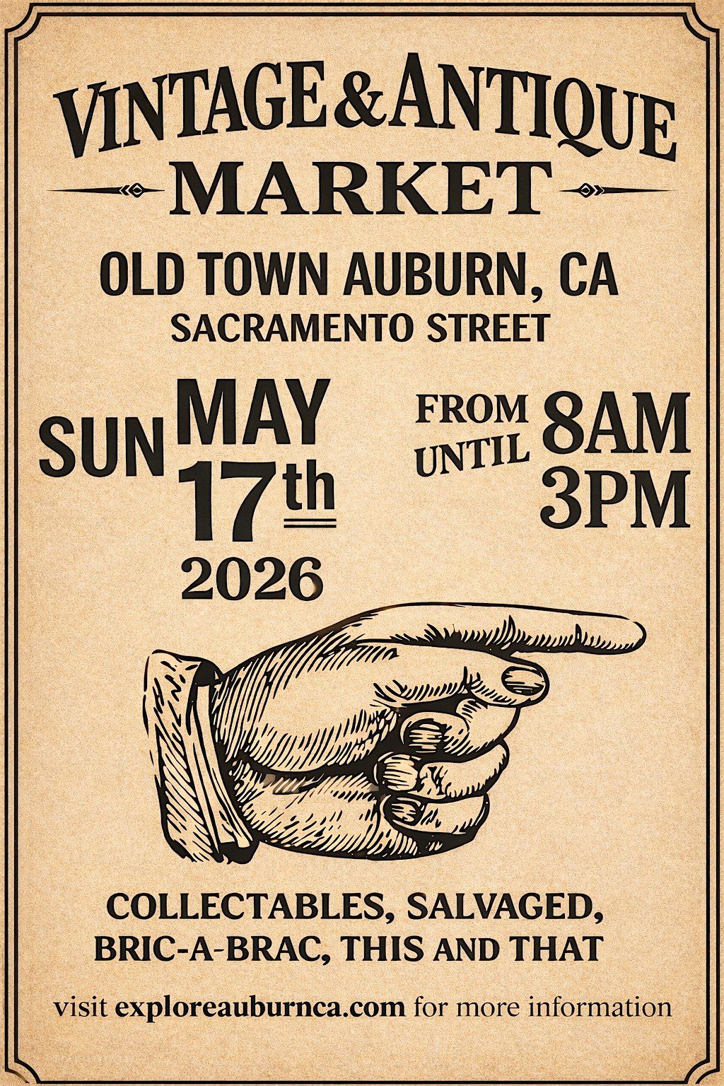 STEP INTO A DAY OF TIMELESS TREASURES AND SMALL-TOWN CHARM AS THE VINTAGE & ANTIQUE FAIR RETURNS TO OLD TOWN AUBURN ON Sunday, MAY 17, 2025, FROM 8:00 AM TO 3:00 PM.