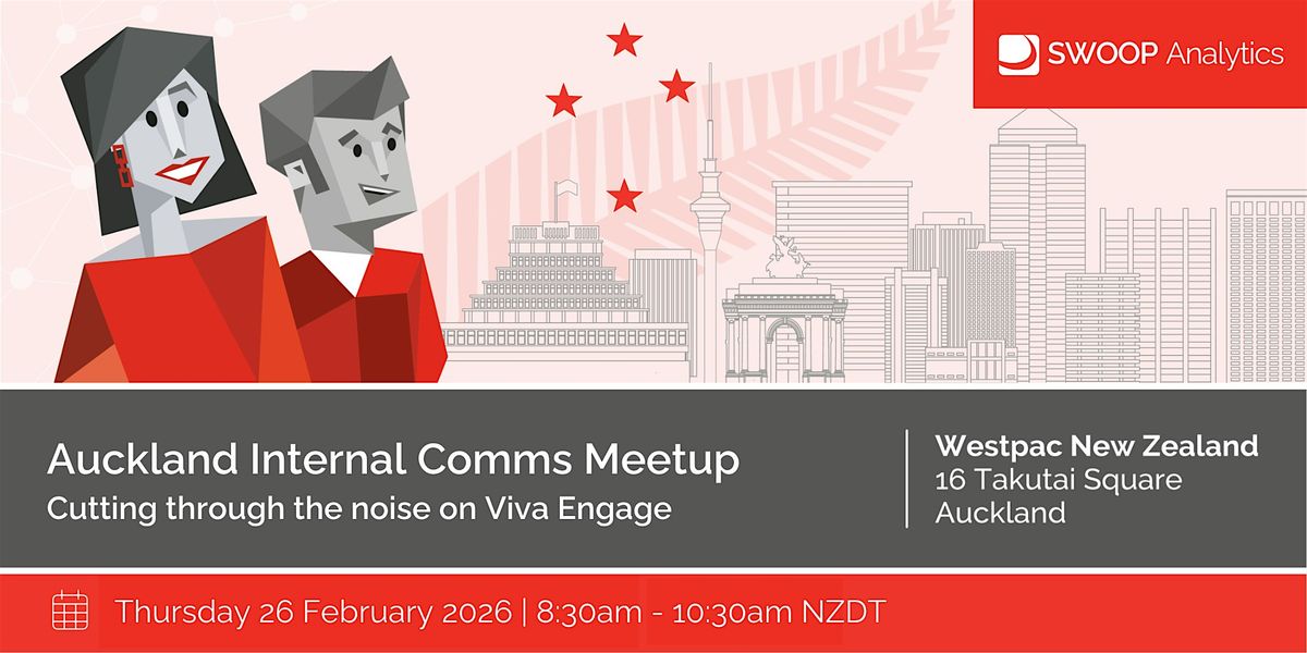Join us at our upcoming Auckland internal comms meet-up where we’ll unpack the latest findings from the 2025/26 Viva Engage Benchmarking Report, with a special focus on managing information overload across Viva Engage.