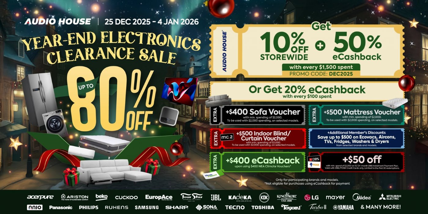 Use promo code DEC2025 at checkout when shopping online at www.audiohouse.com.sg !
