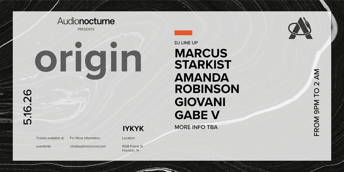 On May 16, Audionocturne unveils ORIGIN, an elevated night built around intentional sound, immersive energy, and a refined crowd that moves with the music.