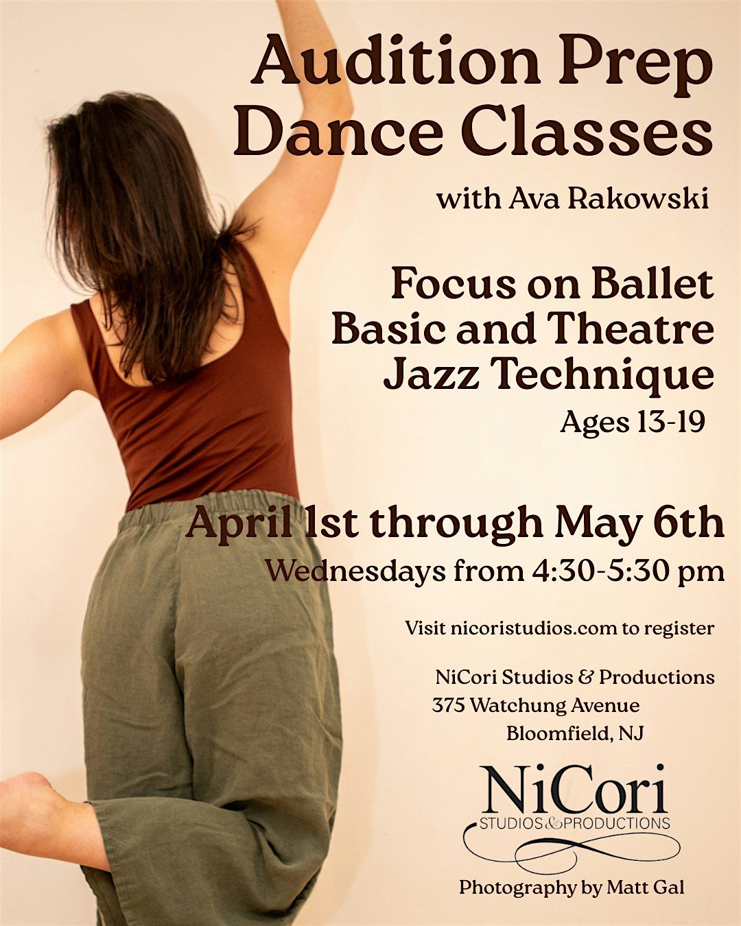 Join choreographer, Ava Rakowski for our Audition Prep dance class, open to students of all levels ages 13-19!