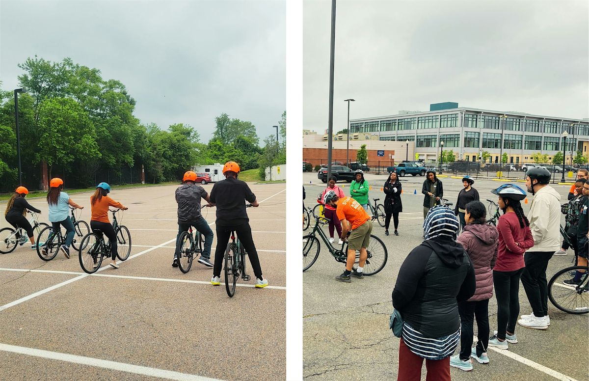 This class is open to all genders, and is appropriate for people who have never ridden a bike before, have not been on a bike for a long time, or can pedal but need to work on basic skills (like stopping, turning, and changing gears). It is taught entirely in a parking lot.
