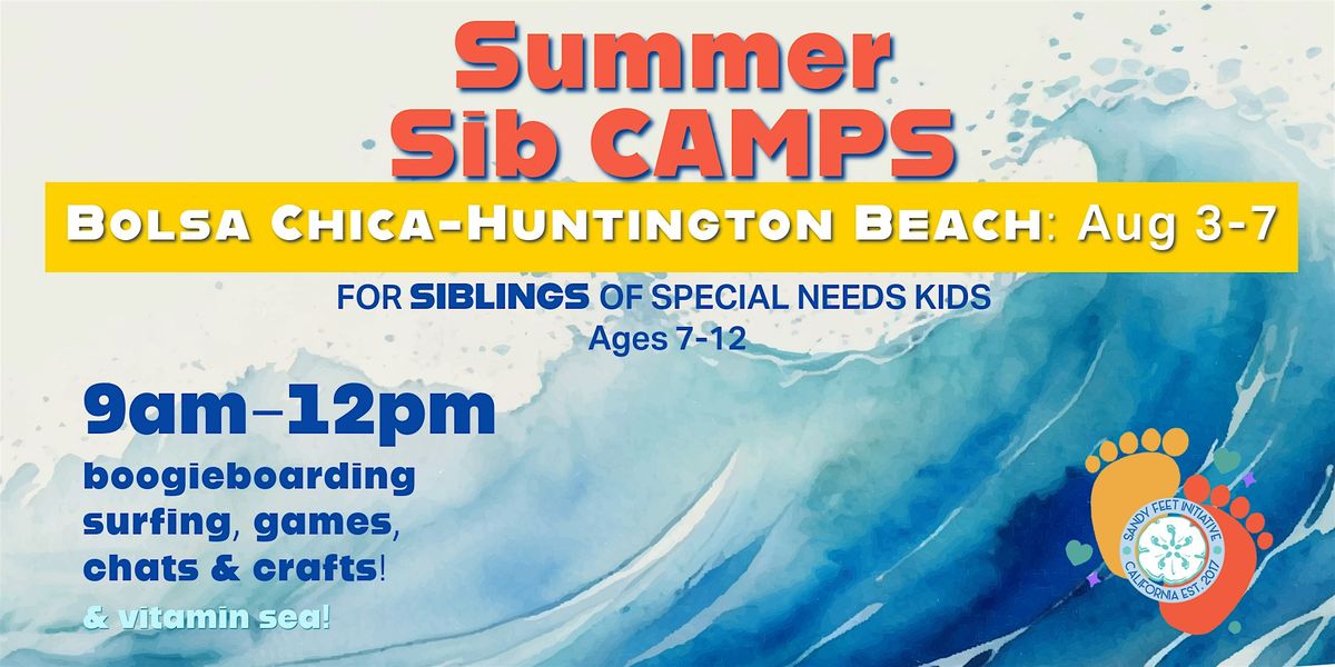 JOIN US IN HUNTINGTON BEACH at BOLSA CHICA BEACH! August 3-7: 9AM-12PM for some #SERIOUSFUN with other sibs. We'll boogie board, play some beach games, create fun crafts, & have some chats all about being a sib! And don't forget all the vitamin SEA you can soak up!