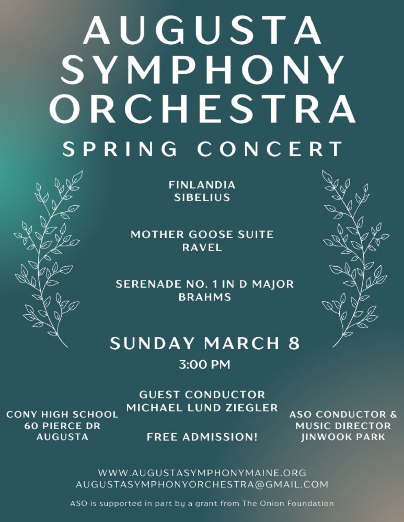 Had enough of winter? Join the Augusta Symphony Orchestra for a Spring concert on Sunday, March 8, at 3:00 pm at Cony High School’s Viles Auditorium.