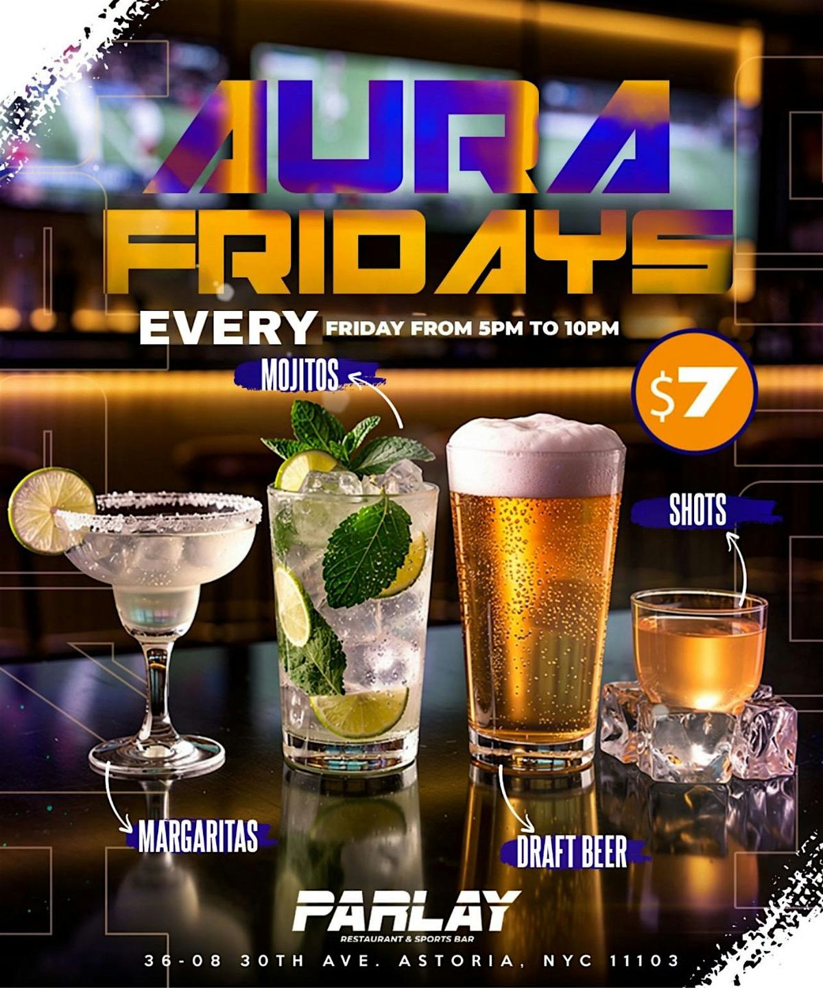 AURA FRIDAYSEVERY FRIDAY | 5PM–10PM | $7 DRINKS