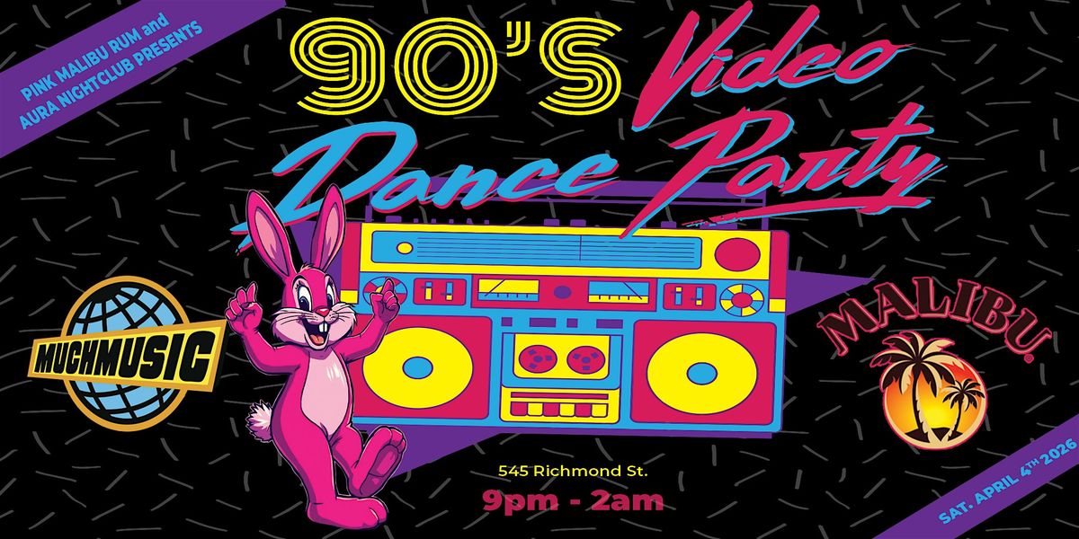 SaturdaY April 4th, 2026 - AURA NIGHTCLUB will be hosting a 90's MUCH MUSIC VIDEO DANCE PARTY - EASTER EDITION starting at 9pm! Please see ticket tiers for all entry information! Presented by the NEW PINK MALIBU