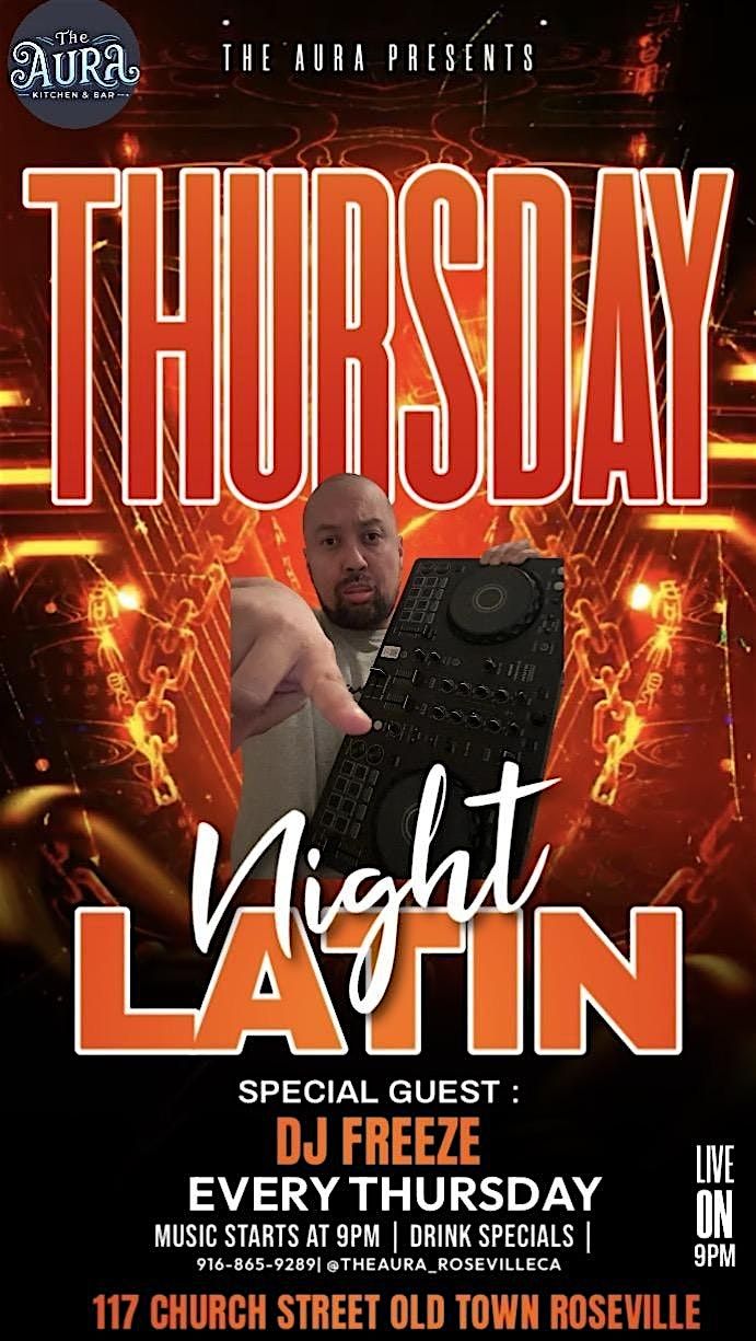 Get ready for a fun night at The Aura Kitchen and Bar on March 26, 2026 at 9:00 PM (PDT). Join us for great vibes, awesome Latin beats, and tasty drinks. Whether you're coming with friends or flying solo, it's the perfect way to kick off your Thursday night. Don’t miss out on the energy and rhythm that make Auras Latin Thursdays a weekly favorite! Surprise food truck being featured! DJ FREEZE IN THE MIX with the hottest beats! You won't wanna miss out on Rosevilles only Thusday Latin party!