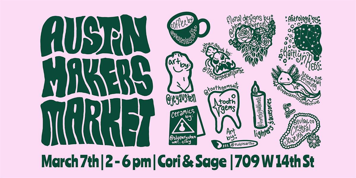 A market to highlight local Austin vendors. Featuring coffee, flowers, tooth gems, astrology, leather goods, jewelry, and other artists.About this Event