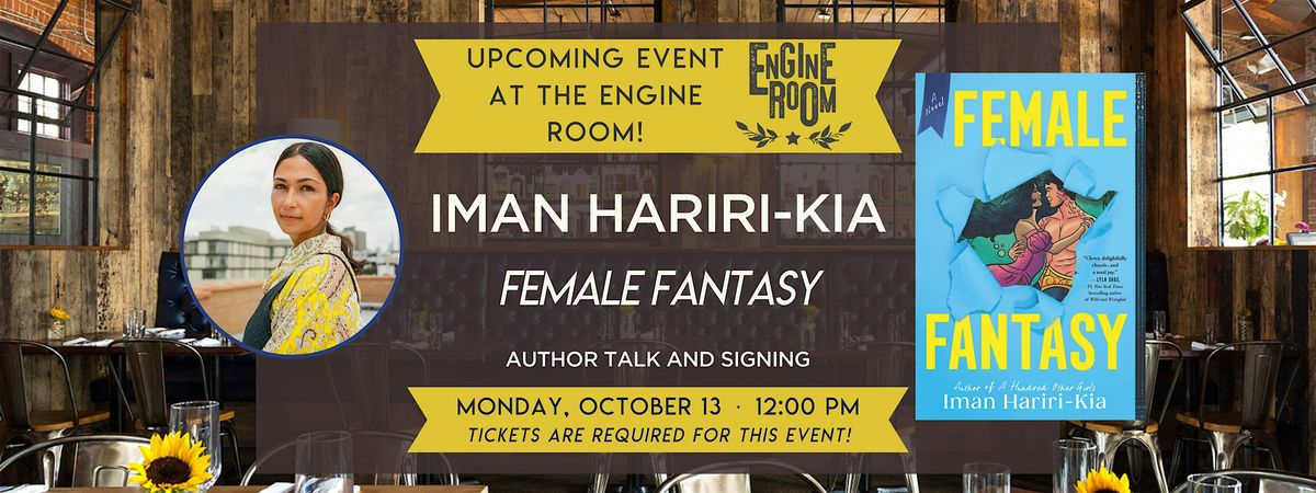 Bank Square Books present an author brunch and signing with Iman Hariri-Kia in celebration of her new novel "Female Fantasy" Tickets for this event are $60 and include an author talk and signing, a signed copy of "Female Fantasy", and a buffet brunch at the Engine Room in Downtown Mystic. This event requires pre-registration.