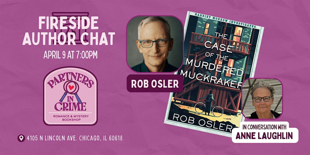 Join us at Partners in Crime Bookshop for a cozy fireside chat with Rob Osler and Anne Laughlin as they discuss Rob’s latest Harriet Morrow Investigates novel, The Case of the Murdered Muckraker.