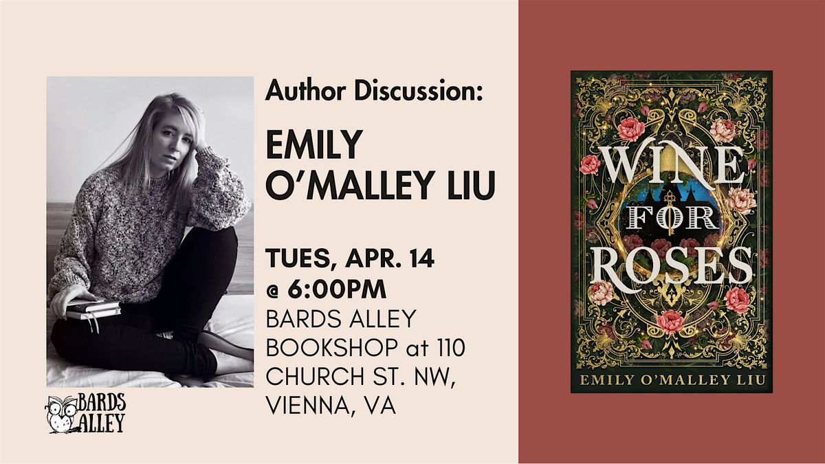 Join us at Bards Alley for an event with local debut author Emily O'Malley Liu as she discusses her upcoming romantic fantasy novella WINE FOR ROSES. This is a lushly written world featuring a queer, slow-burn romance and complex characters fighting to overcome a curse that has perforated an historic, Victorian residence and its occupants.