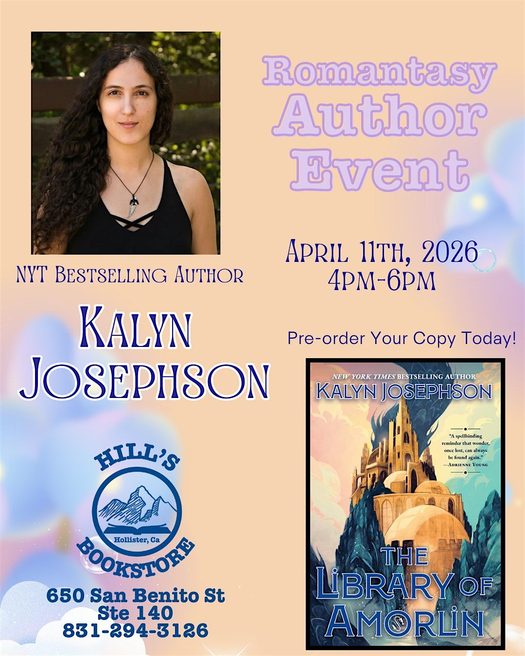 Join Us for a conversation with NYT Bestselling Author Kalyn Josephson as we discuss the release of her new book, The Library of Amorlin.About this Event