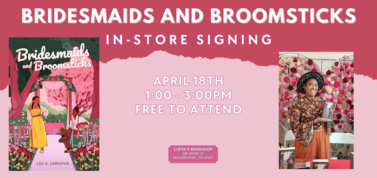 Join us at Cupid's Bookshop for a book signing with author Lily A. Larkspur. Lily will be in store signing copies of her newest book Bridesmaids and Broomsticks.