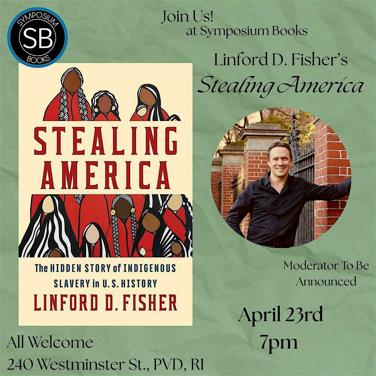 Join us on April 23rd at 7pm as we host Linford D. Fisher to discuss his latest book, Stealing America: The Hidden Story of Indigenous Slavery in U.S. History. Signed copies of the book will be available for purchase.