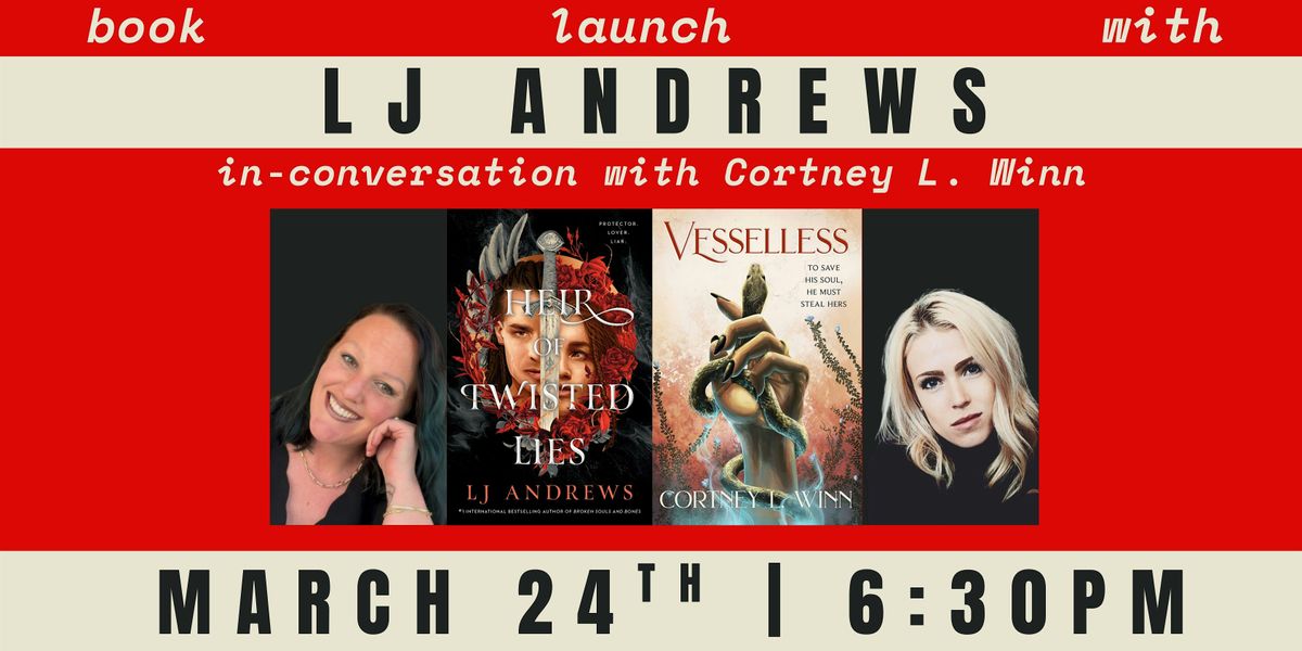 Please join us and author LJ Andrews as she discusses her new book: HEIR OF TWISTED LIES. LJ will be in conversation with Cortney L. Winn.