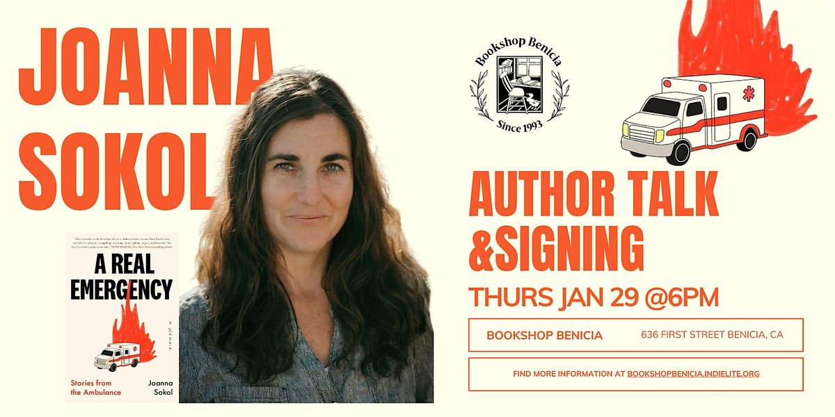 Bookshop Benicia will host author and veteran paramedic Joanna Sokol for an author talk and discussion on Thursday, January 29 at 6:00 PM, celebrating the release of her essay collection, A Real Emergency: Stories From the Ambulance.