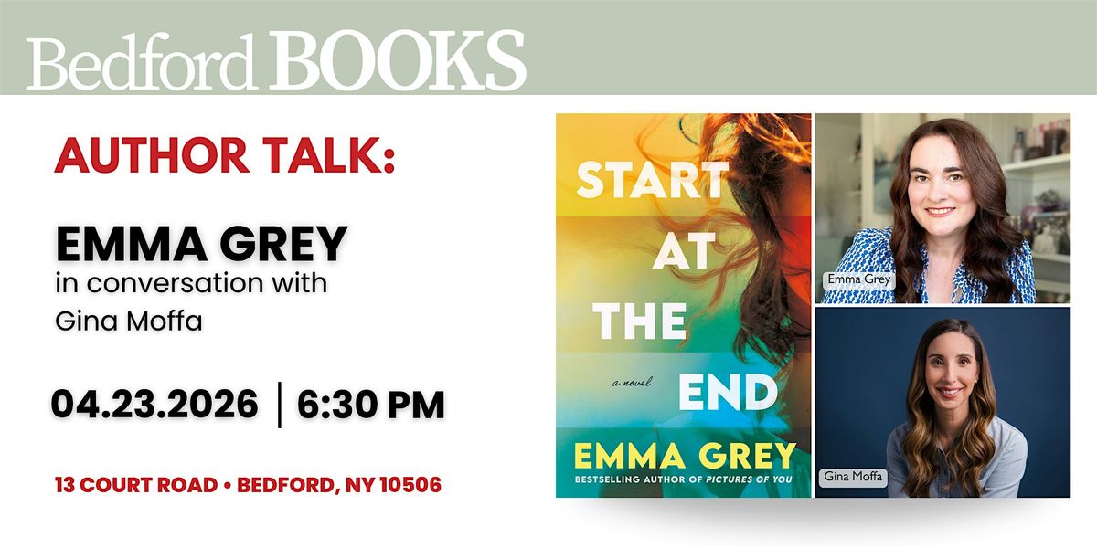 We’re thrilled to welcome Emma Grey, bestselling author of Pictures of You and The Last Love Note, to Bedford Books! Join her in conversation with author & grief therapist Gina Moffa as they discuss Emma’s new book, Start at the End.
