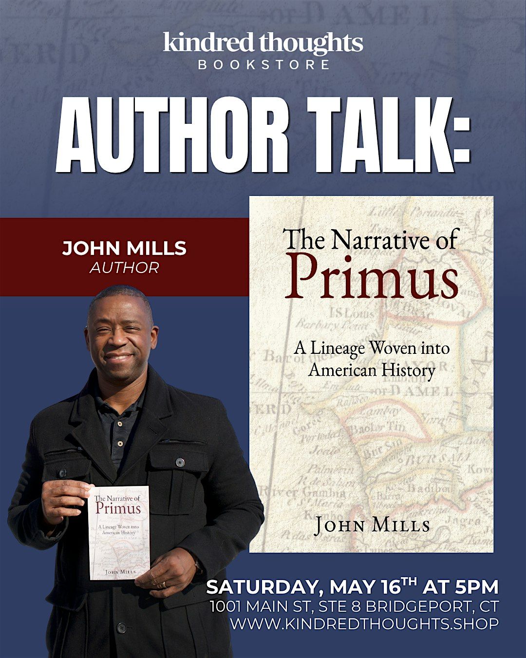 Join us on Saturday, May 16th at 5pm as we welcome CT based author, John Mills as he shares his first novel, The Narrative of Primus: A Lineage Woven into American History. John will also discuss the genealogy process for those who are interested.