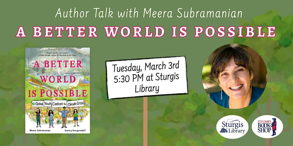 Titcomb's Bookshop and Sturgis Library present environmental journalist and author Meera Subramanian to speak about upcoming graphic novel A Better World Is Possible on Tuesday, March 3rd at 5:30 PM at Sturgis Library in Barnstable.