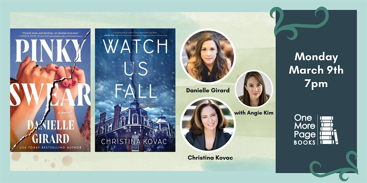You are in for a treat with not one but TWO new releases from authors Danielle Girard (Rookie Club Series) and Christina Kovac(THE CUTWAY)! Joining them in conversation is author Angie Kim (HAPPINESS FALLS, MIRACLE CREEK). It is sure to be a night you don't want to miss!