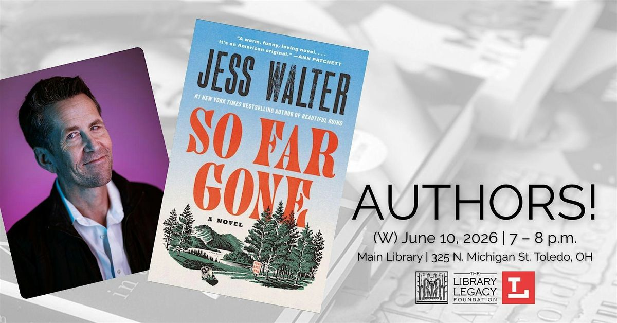 Renowned as a "genius of the modern American moment," #1 New York Times bestselling author Jess Walter joins Authors! to discuss his latest work, So Far Gone. Walter is celebrated for his "protean storytelling power" and a signature style that blends "standup tragedy" with sharp social observation. Immerse yourself in the mind of one of America’s most versatile writers as he explores the complexities of family and a fractured nation. This event features a 45-minute presentation followed by a brief audience Q&A. Each ticket includes a copy of the book.