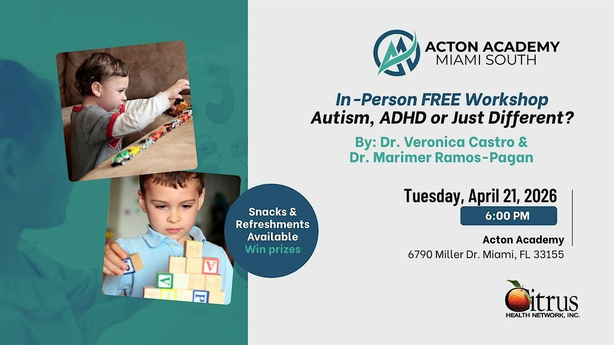 Join us for a FREE in-person workshop designed to help parents better understand the differences between autism, ADHD, and unique developmental paths.