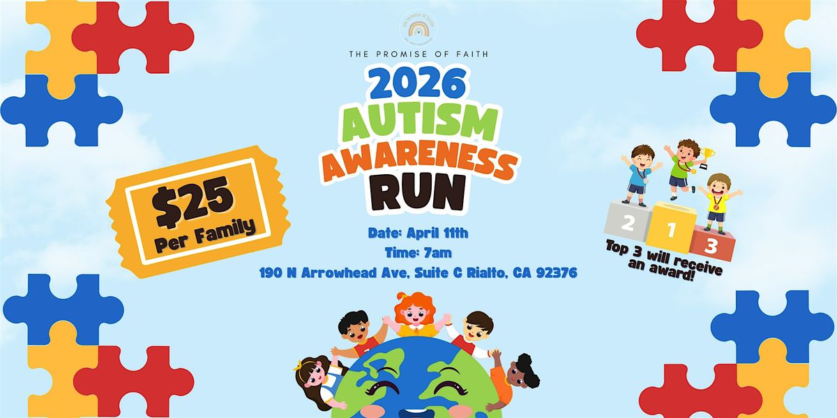 Run for autism awareness with The Promise of Faith! April 11, 7AM in Rialto. $25 per family (up to 4). Top 3 finishers win awards!