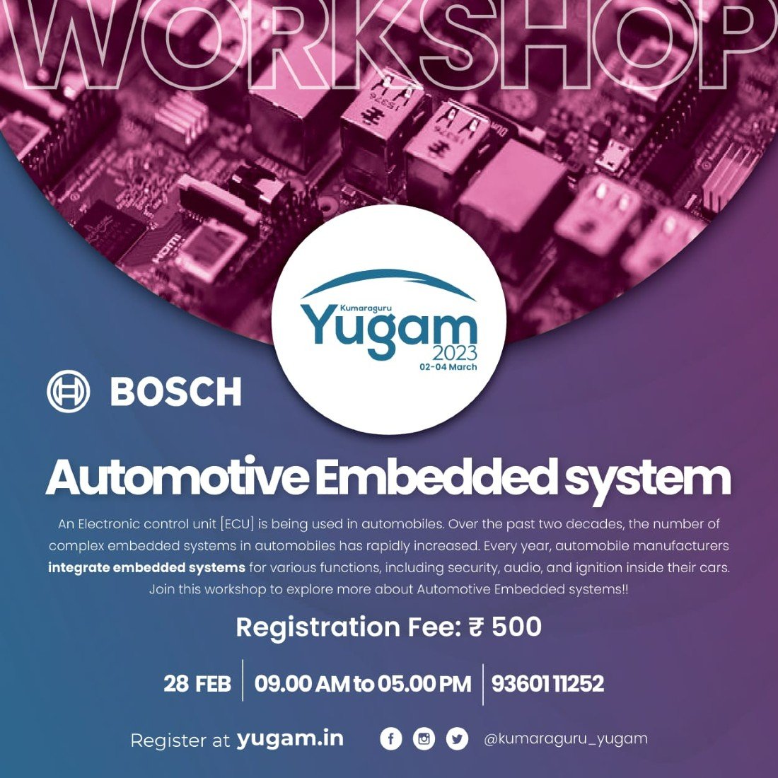 An Electronic control unit [ECU] is being used in automobiles. Over the past two decades the number of complex embedded systems in automobiles has rapidly increased. Every year automobile manufacturers integrate embedded systems for various functions including security audio and ignition inside their cars. Join this workshop to explore more about Automotive Embedded systems!!