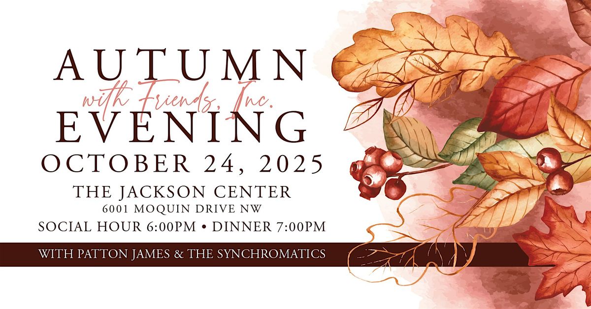 Welcome to Autumn Evening with Friends, Inc.! Join us for a cozy gathering at the Jackson Center as we celebrate the beauty of the fall season. Get ready for a night filled with laughter, dinner, dancing, and great company. This in-person event is the perfect opportunity to reconnect with old friends and make new ones. Don't miss out on this chance to create lasting memories as we welcome autumn together, all for a worthy cause. See you there!