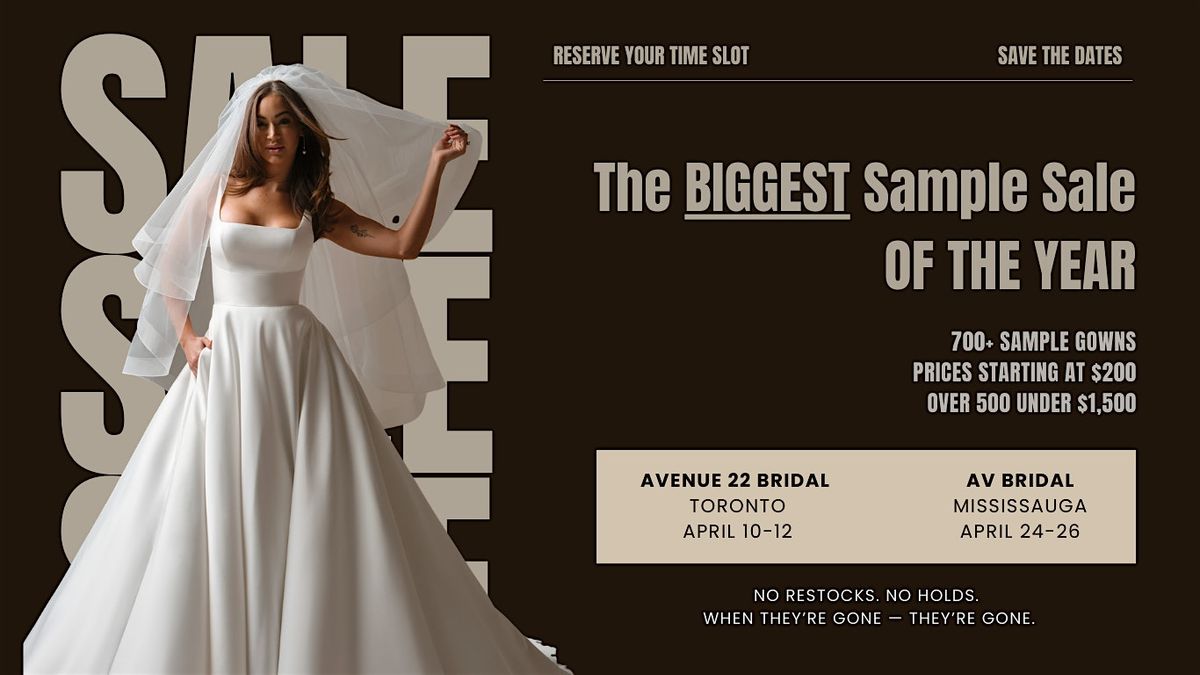Our sister store Avenue 22 Bridal in Toronto will host its own Sample Sale: