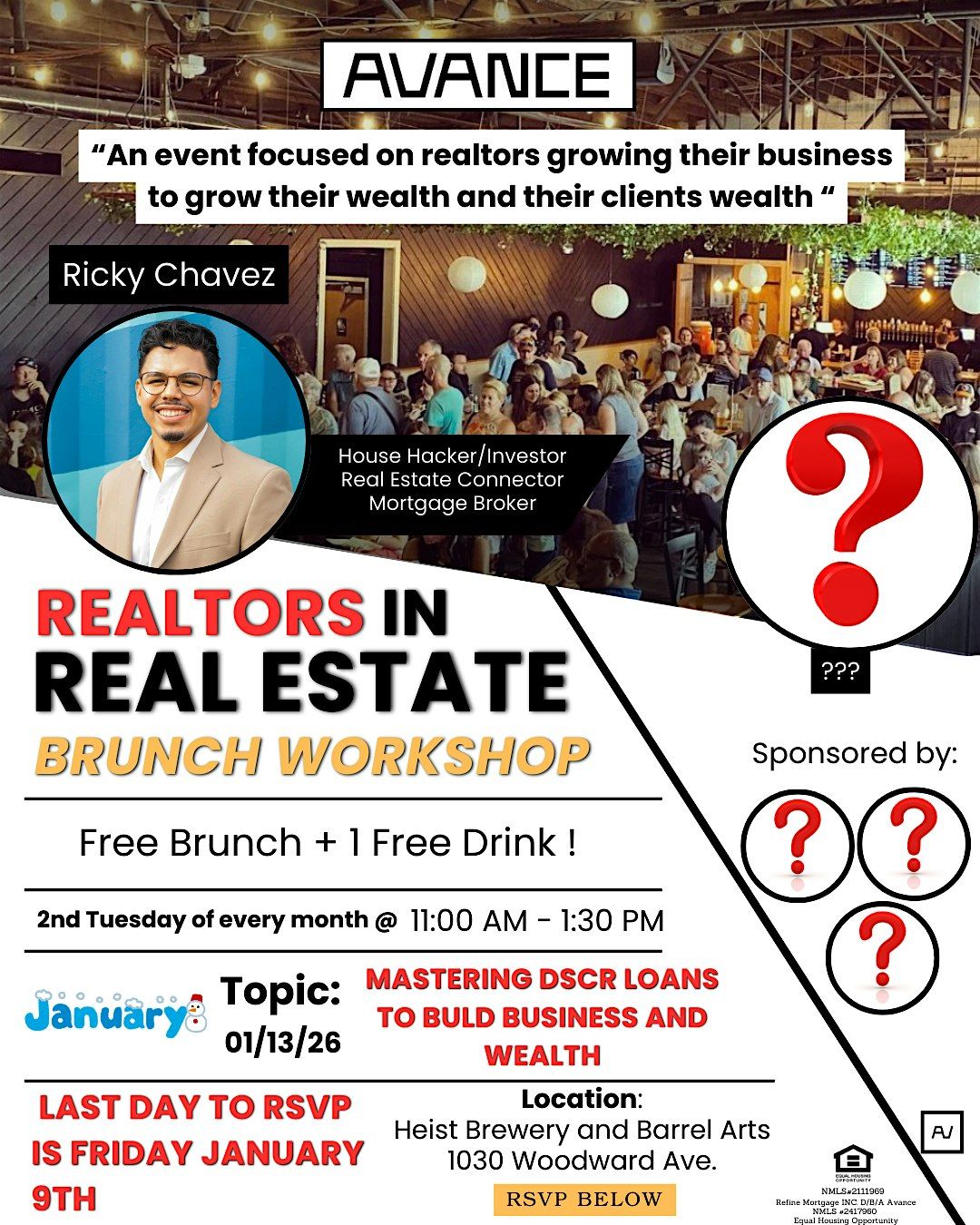 REALTORS IN REAL ESTATE BRUNCH: An event designed to help realtors grow their business, build wealth, and learn how to better serve their clientsβthis time through the lens of real estate investing. π