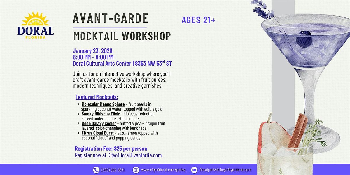 Date: Friday, January 23, 2026 Timeframe: 6:00 PM - 8:00 PM Location: Doral Cultural Arts Center, 8363 NW 53rd ST Registration Fee: $25.00 per person
