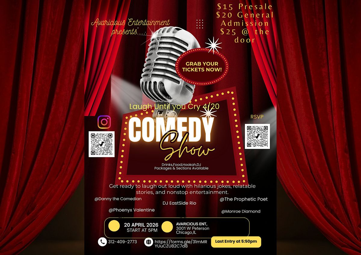 Avaricious Entertainment presents the 4/20 Laugh Until You Cry Comedy Show β a live experience bringing together comedy, music, and energy all in one room.