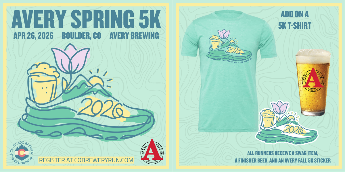 Join us for The Avery Spring 5k @ Avery Brewing on April 26, 2026, for a 5k fun run event that starts and ends at this awesome taproom in Boulder. Run, walk, jog - whatever goes! Complete the course and celebrate with us and a FREE, local craft brew at the finish line.