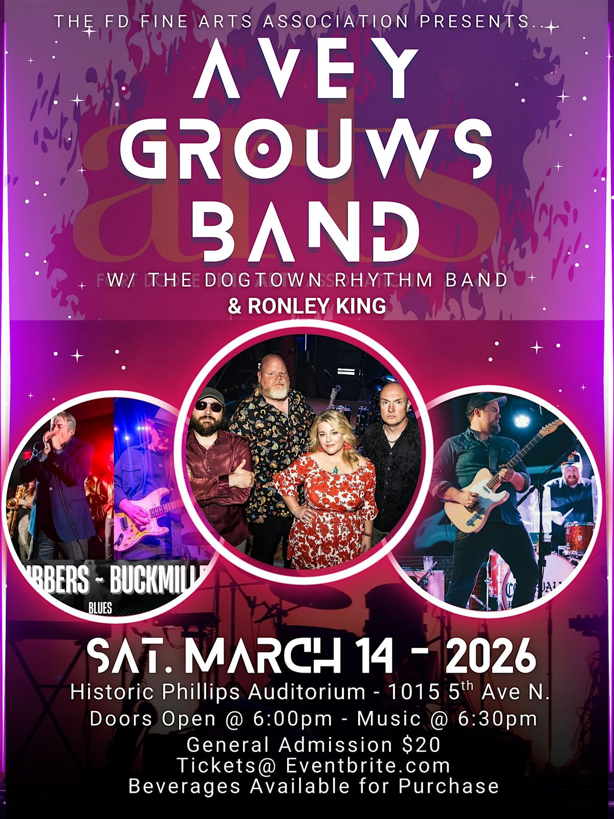 Get ready for an awesome night with Avey Grouws Band bringing the vibes in person! Joining them are the groovy The Dogtown Rhythm Band and the soulful Ronley King. It’s gonna be a night full of great music, good energy, and unforgettable moments. Grab your friends, come hang out, and enjoy some live tunes!