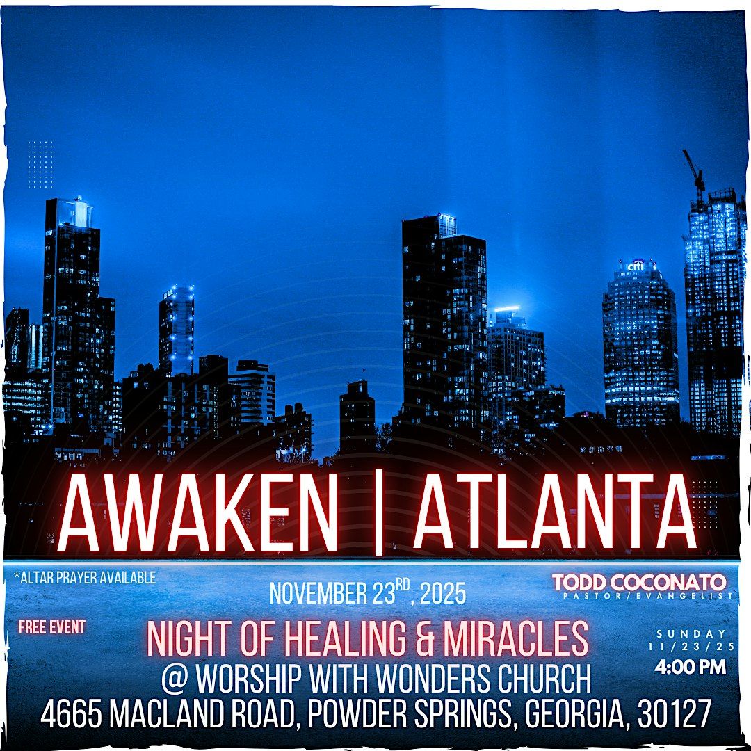 This is going to be an action-packed, powerful night full of God’s presence and power! We are coming together to encounter the Holy Spirit in a fresh and life-changing way. Pastor and Evangelist Todd Coconato and special guests are coming to Atlanta, and we are going to get out of the way and let His Holy Spirit move freely.