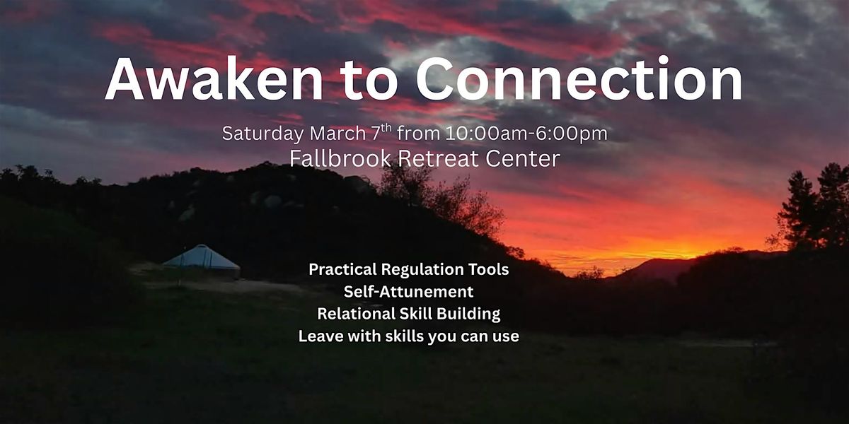 Modern life overloads our senses, pulls our attention in a dozen directions, and leaves us feeling untethered. Awaken to Connection is a day-long immersive retreat set on 18 acres of sacred land near Temecula. Here, you will practice the skills that cultivate connection. Through carefully designed embodied exercises, relational drills, and moments of deep stillness, you’ll learn to meet yourself and others with clarity, courage, and curiosity. Join us in learning the tools and connecting with community to help you remember how to belong.