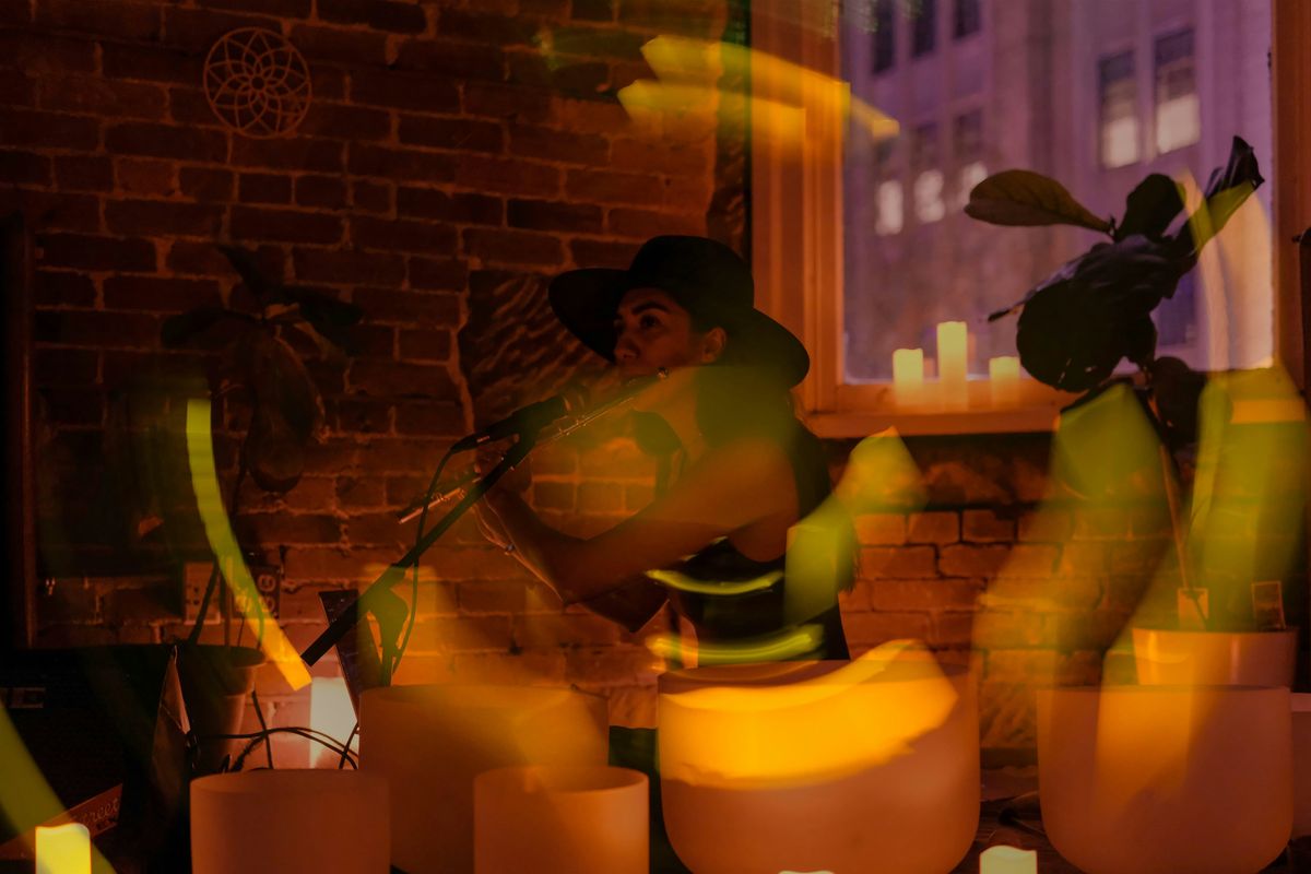 Expansion reflects the upward, open energy of early summer. The evening begins with cacao to settle the body and bring awareness. Ashley guides a grounding meditation and breath sequence that supports clarity before the room shifts into a layered sound bath by Delyar. During the sound bath, you’ll create an abstract painting using broad strokes, gentle gradients, and spacious movements. The process is expressive, open, and designed to mirror the sense of widening perspective that June brings.