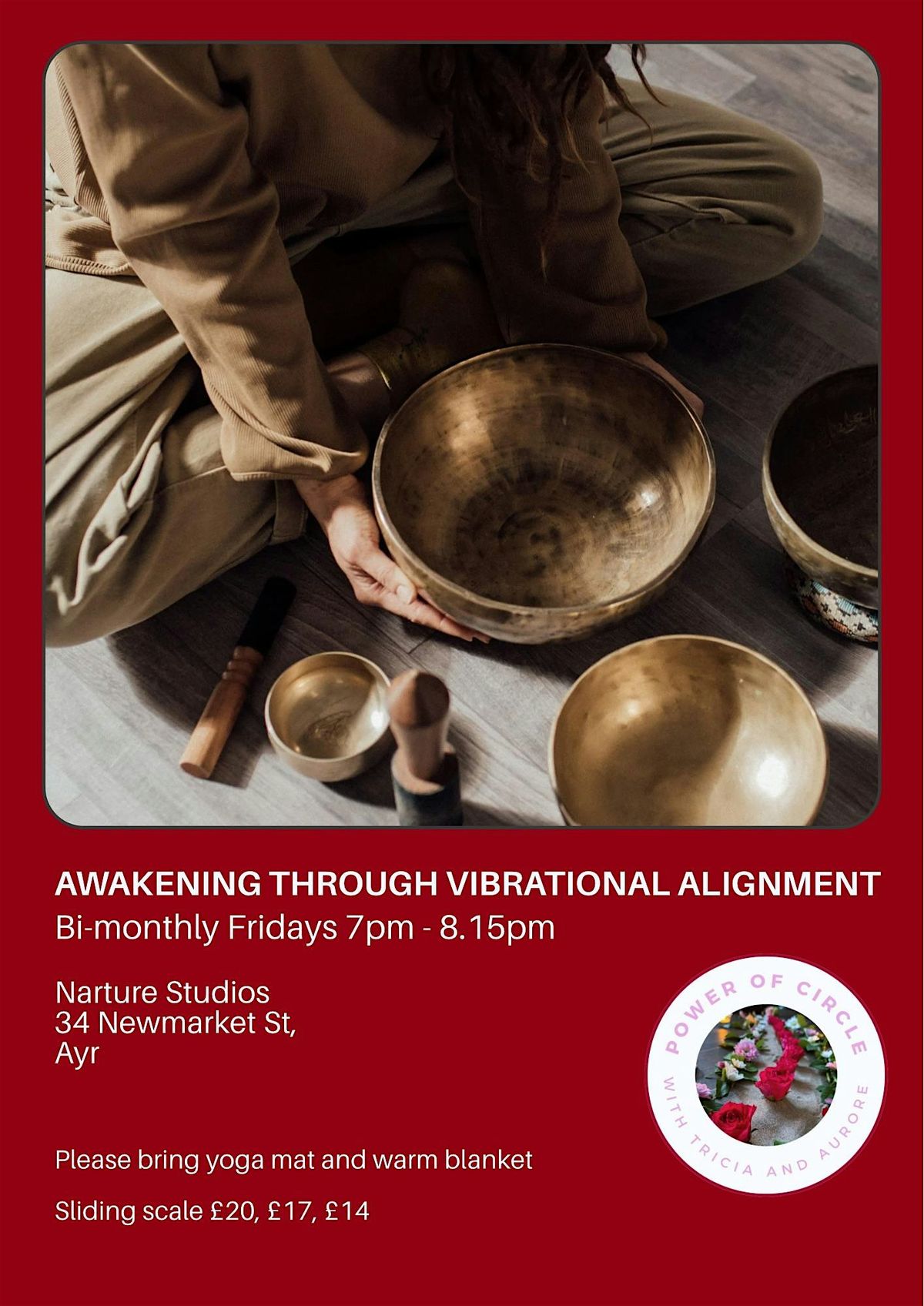 Please wear comfortable and warm clothes, bring a yoga mat (we have a few spares if needed) and blankets. Some people also enjoy an eye mask.