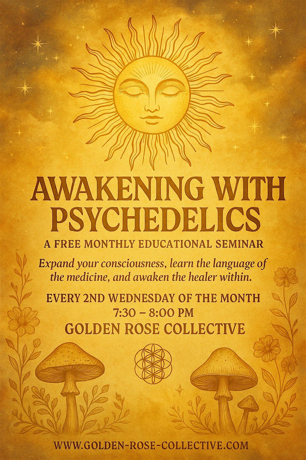 Whether you’re brand new to psychedelics, have journeyed before, or are simply curious about the medicine path, this seminar will offer you insight, clarity, and inspiration in a grounded, safe, and non-judgmental space.