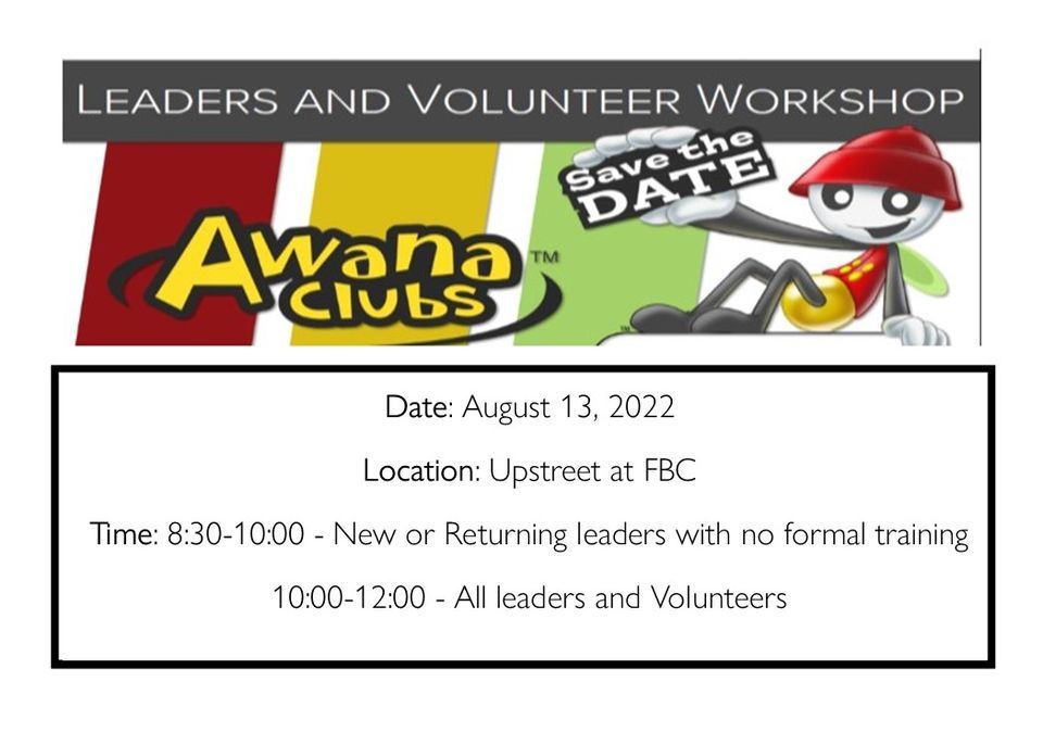 FBC Awana Leader and Volunteer training. Come get up to speed for the new year!