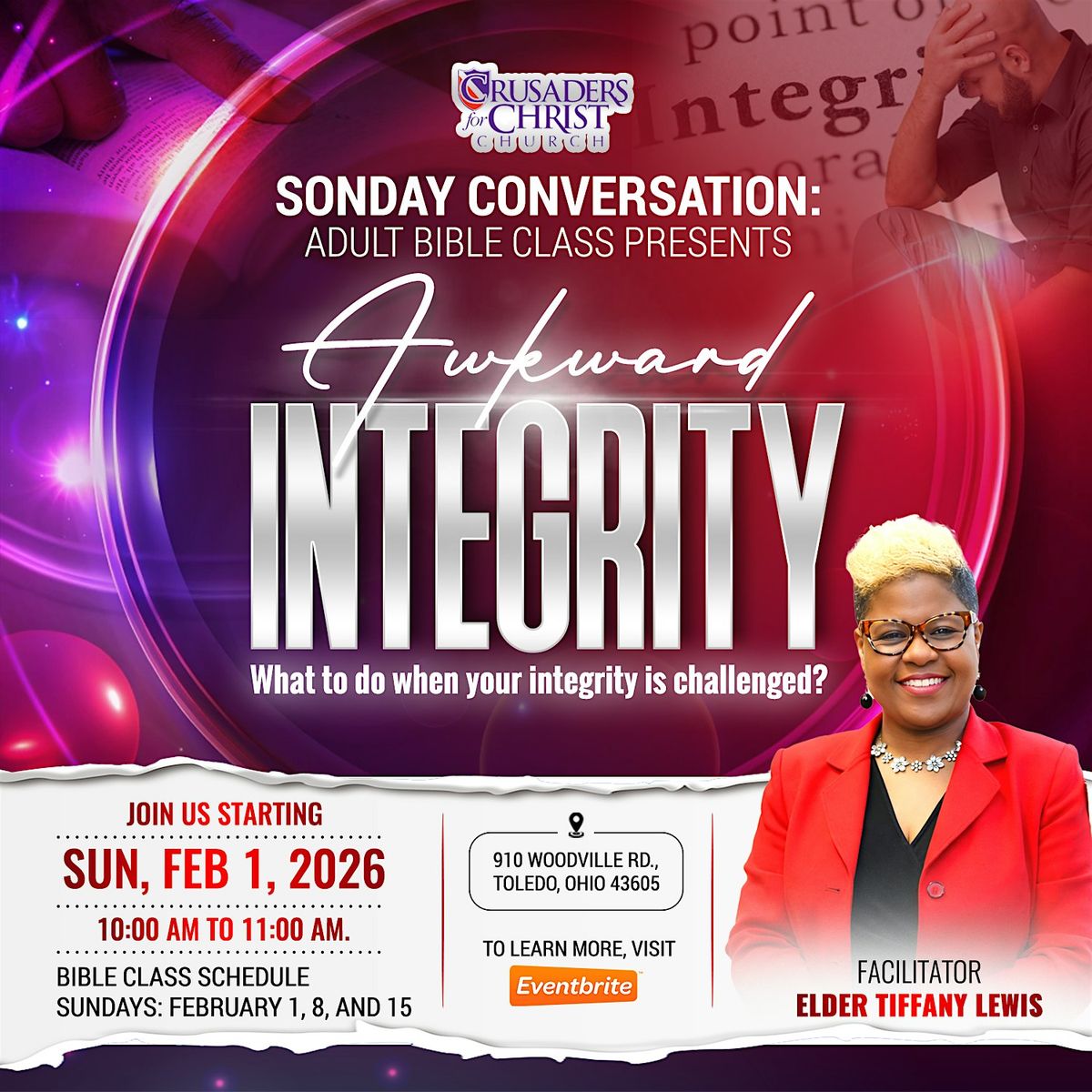 Have you ever had your integrity challenged? Join a Bible class series exploring integrity through the story of Joseph in Potiphar's house. Led by Elder Tiffany Lewis, this engaging program includes discussions and activities to help maintain integrity in challenging situations. It's an opportunity for spiritual growth, encouragement, and community connection. Invite friends and family to participate. For more information and to register, visit EventBrite.com. Don't miss this God-inspired workshop.