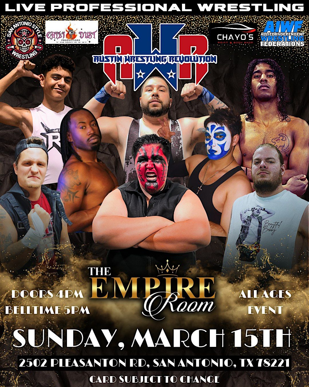 🎪🔥 AUSTIN WRESTLING REVOLUTION TAKES OVER THE EMPIRE ROOM – MARCH 15 🔥🎪