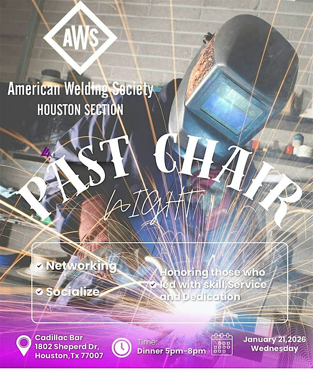 Join us for a fun in-person gathering celebrating the amazing folks who've led AWS Houston! It’s a great chance to catch up, share stories, and network with past chairs who’ve shaped our community. Whether you’re a former chair or just want to meet those who’ve made a difference, this night is all about connection and good vibes. Don’t miss out!