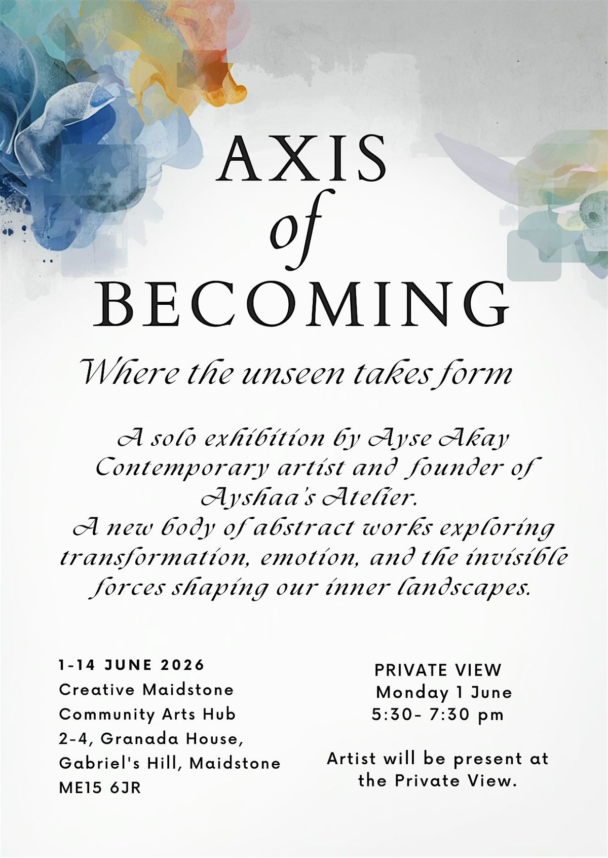 Get ready to dive into creativity and inspiration at the Axis of Becoming art exhibition! This in-person event brings together amazing artists and their unique works that explore transformation and growth. Whether you're an art lover or just curious, it's the perfect chance to experience fresh perspectives up close. Don’t miss out on this vibrant celebration of art and expression!