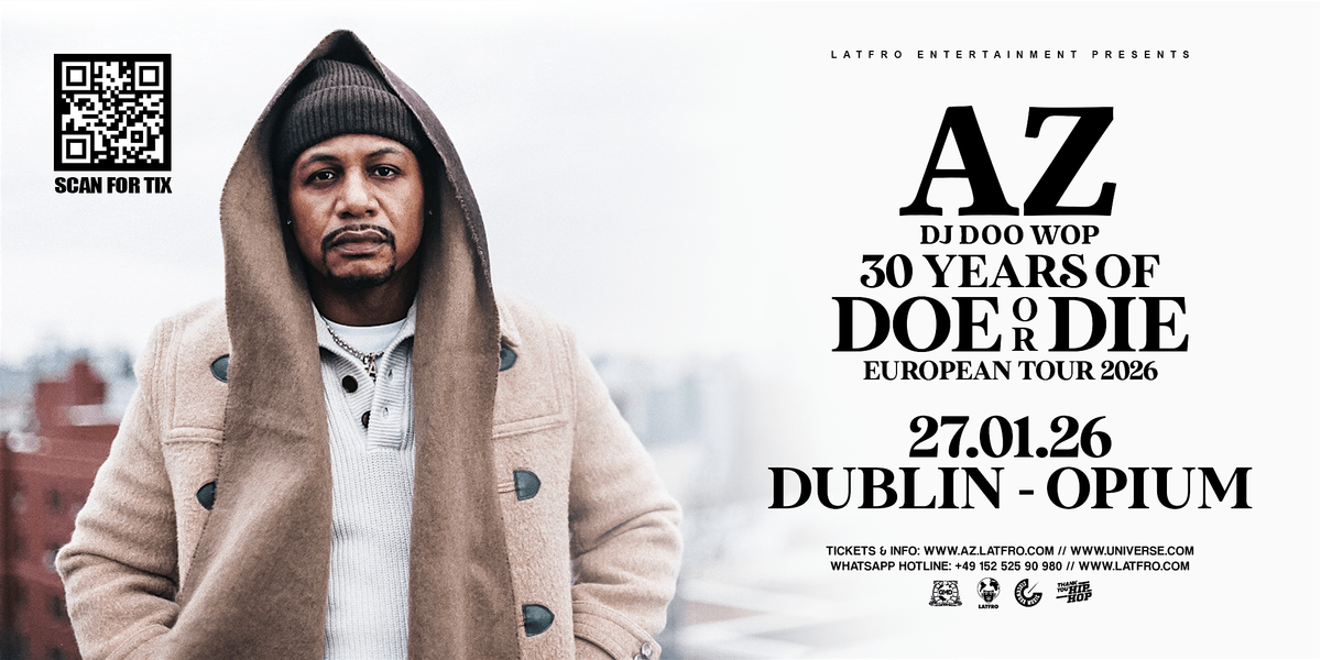On January 27th, 2026, the legendary AZ brings his Doe or Die 30th Anniversary Tour to Dublin at Opium.