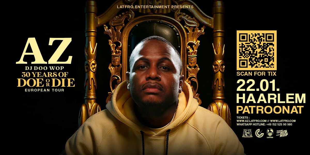 On January 22nd, 2026, the legendary AZ brings his Doe or Die 30th Anniversary Tour to Haarlem at Patronaat.