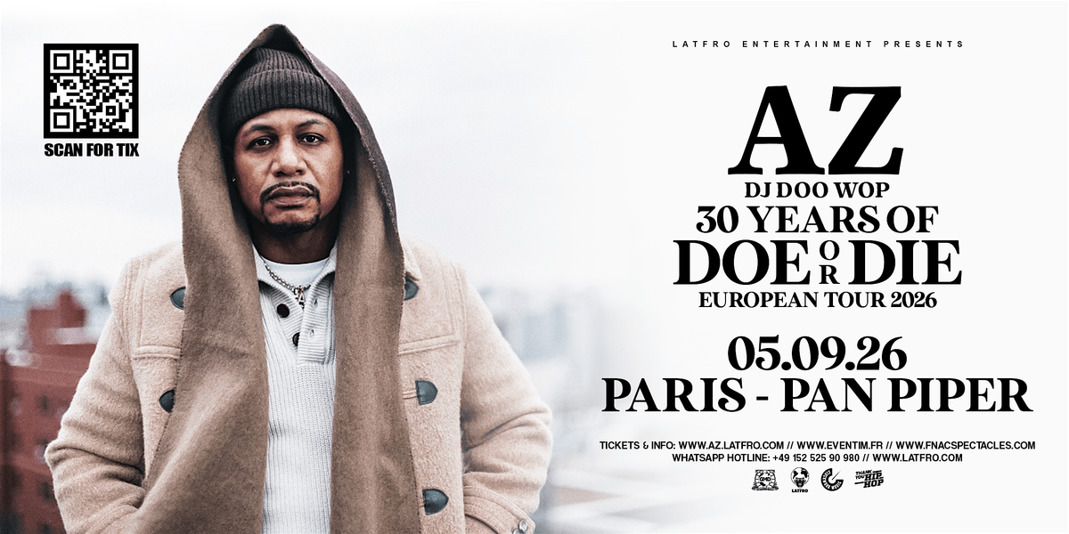 On September 5th, 2026, the legendary AZ brings his Doe or Die 30th Anniversary Tour to Paris at Pan Piper.