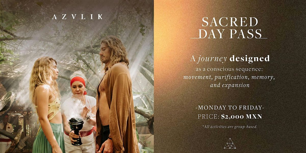 Desde la activación matutina hasta la inmersión vibracional, el Sacred Day Pass te guÃa a través de una experiencia transformadora inspirada en la cosmovisión mesoamericana y la conciencia corporal.