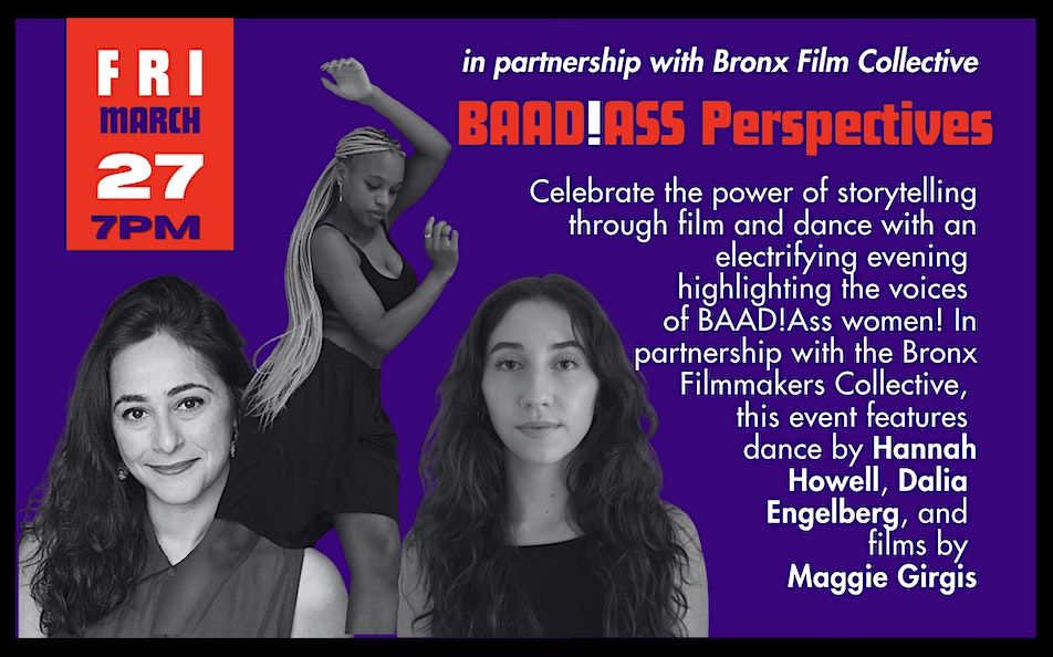 Featuring dance by Hannah Howell, Dalia Engelberg, and films by Maggie Girgis, and The Bronx Filmmakers Collective.